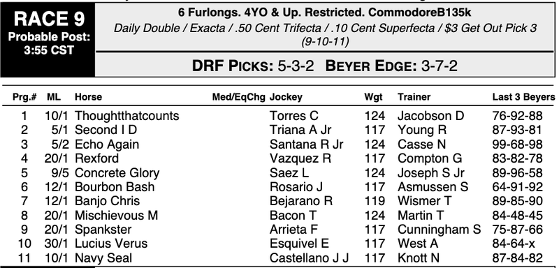 Default 1/2-3 (OP): The Coach; Smarty Jones, Commodore, Renaissance,