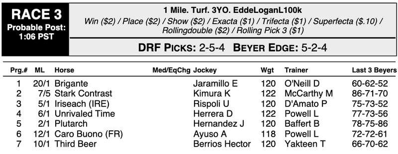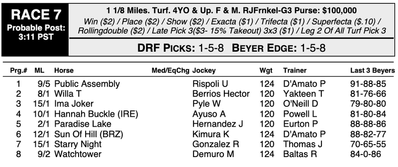 Default 1/8 (SA): Bobby Frankel (G3), Eddie Logan