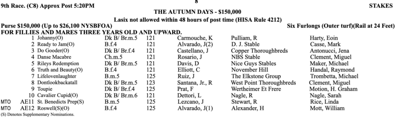 Default 10/18-19 (BAQ): Sands Pt (G2); Noble Damsel, Carle Place, Autumn Days
