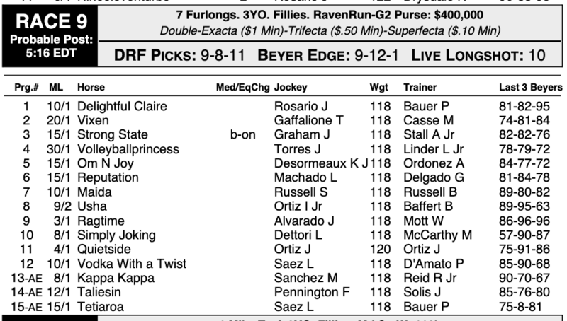 Default 10/18-19 (KEE): Raven Run (G2), Perryville (G3); Dowager (G3)