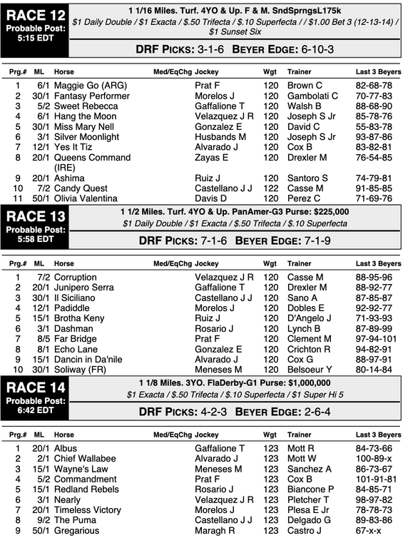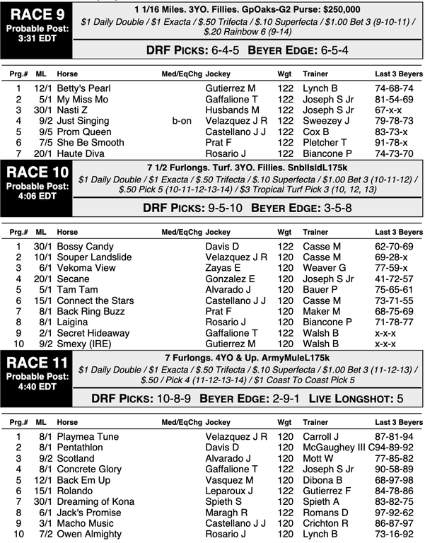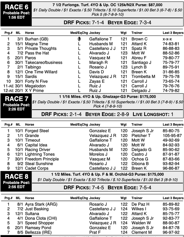 1. Albus (T Gaffalione) 2. Chief Wallabee (J Alvarado) 3. Wayne's Law (M Meneses) 4. Commandment (F Prat) 5. Redland Rebels (J Rosario) 6. Nearly (J Velazquez) 7. Timeless Victory (J Morelos) 8. The Puma (J Castellano) 9. Gregarious (R Maragh) |