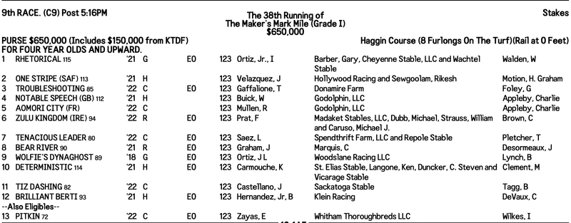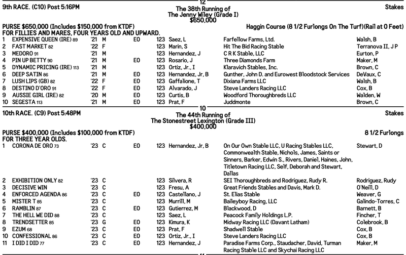 Default 4/10-11 (KEE): Maker's (G1), Limestone (G3); Wiley (G1), Lexington (G3)